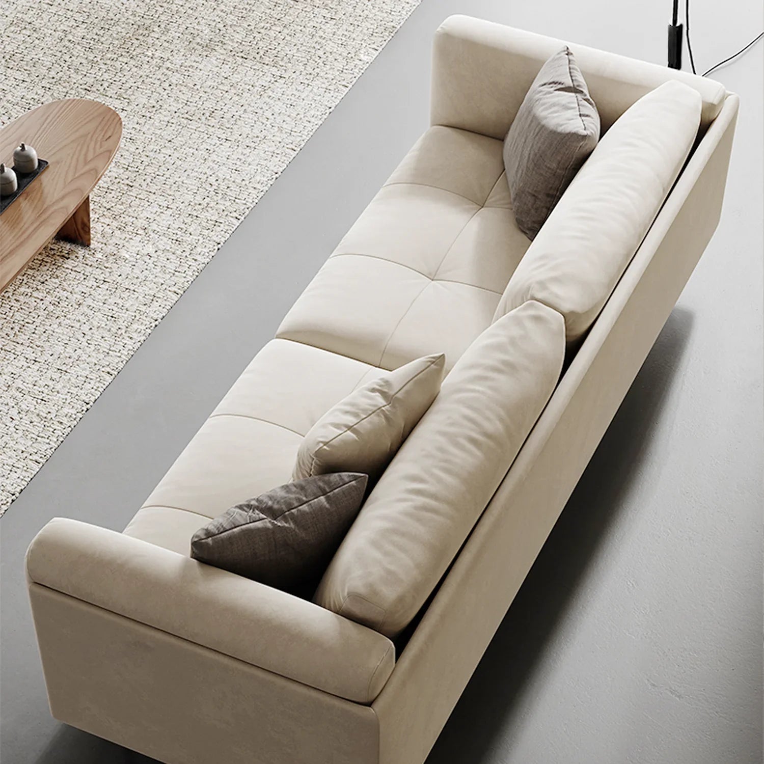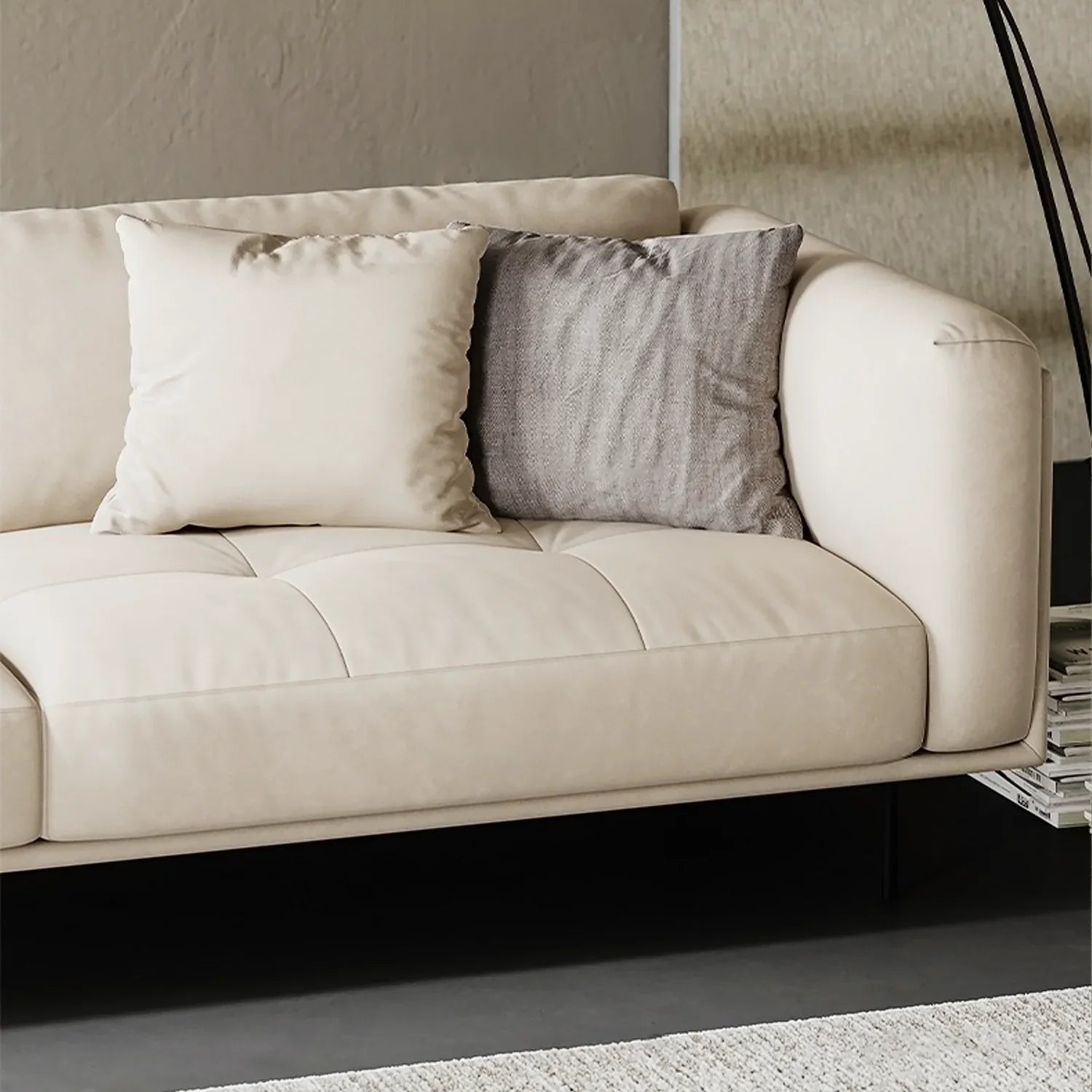Premium Fill Materials:Back Cushion Fill: A luxurious blend of white goose down and eco-friendly silk cotton for a plush, fluffy feel. The high-quality goose down is carefully selected for its high fill power, free of coarse quills, chemicals, and odors, ensuring superior softness and breathability. Compared to duck down, goose down is lighter, cleaner, and provides better loft and resilience.